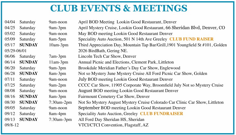 Upcoming T-Bird Events
